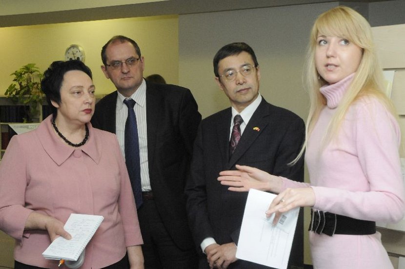 DSC5938 · March 28th, 2012, Mr. Zengwen Liu, the newly-appointed Ambassador of the People's Republic of China for Lithuania visited MRU. From left to right: MRU International Relations Office Head G. Račienė, MRU Vice-Rector dr. Stasys Vaitkevičius, Ambassador Zengwen Liu and MRU's Librarian on a tour of the Mykolas Romeris University Library.